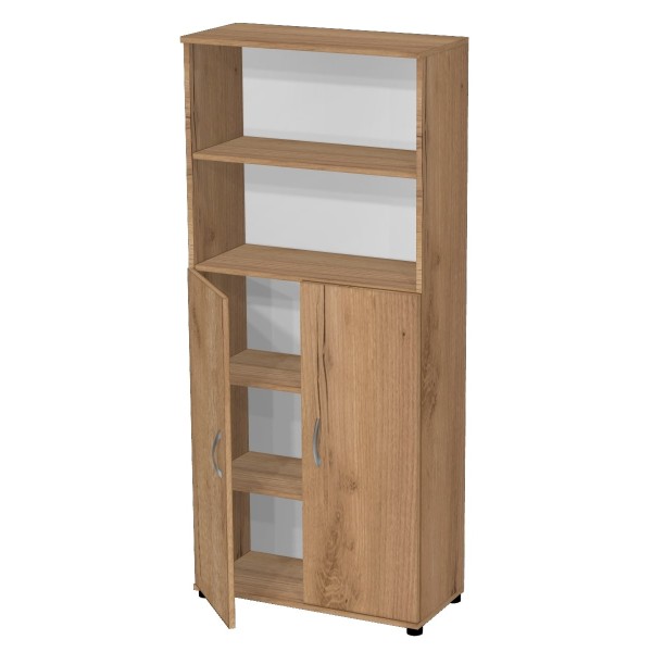 Офисный шкаф для документов полуоткрытый B-42.2 выполнен из ламинированной ДСП толщиной 18 мм. кромка ПВХ 0,5 и 2 мм. Используется импортная фурнитура. Дно шкафа имеют полимерные регулируемые опоры (для большей устойчивости), предотвращающие повреждение напольных покрытий.